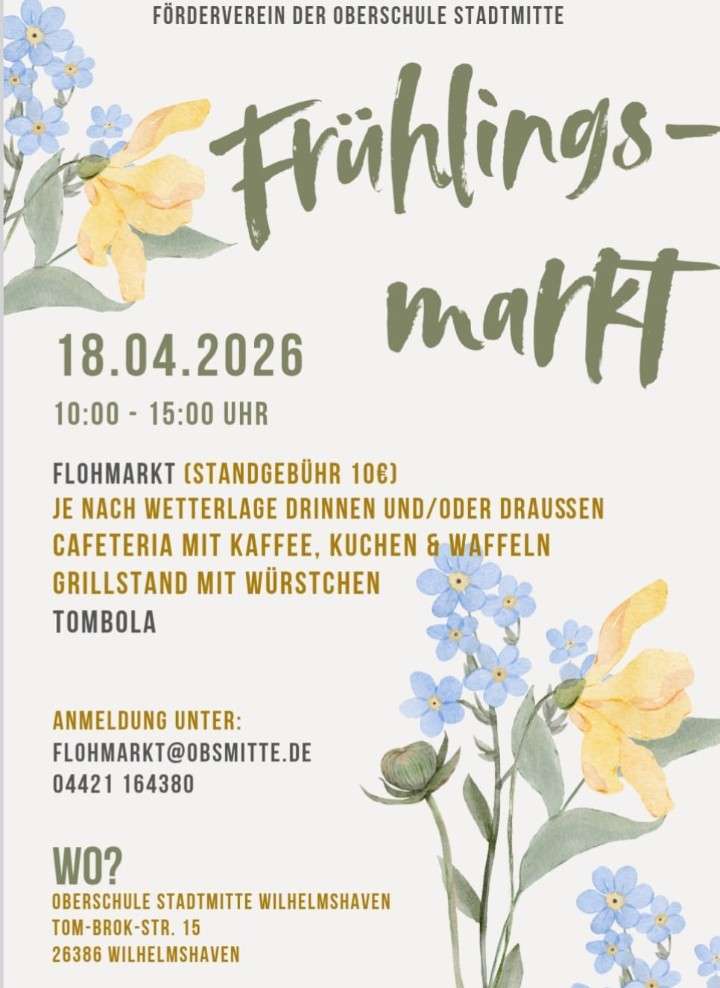 Am 6. April 2024 fand an der Oberschule Stadtmitte in Wilhelmshaven ein Frühlingsmarkt statt, der eine vielfältige Auswahl bot. Besucher konnten sich an herzhaften Bratwürsten, süßem Kuchen und aromatischem Kaffee erfreuen, während sie durch die Stände gingen und alles von Kleidung bis Kinderspielzeug erwerben konnten. Zusätzlich zu den Köstlichkeiten wurde auch Schulkleidung verkauft und eine spannende Tombola veranstaltet.